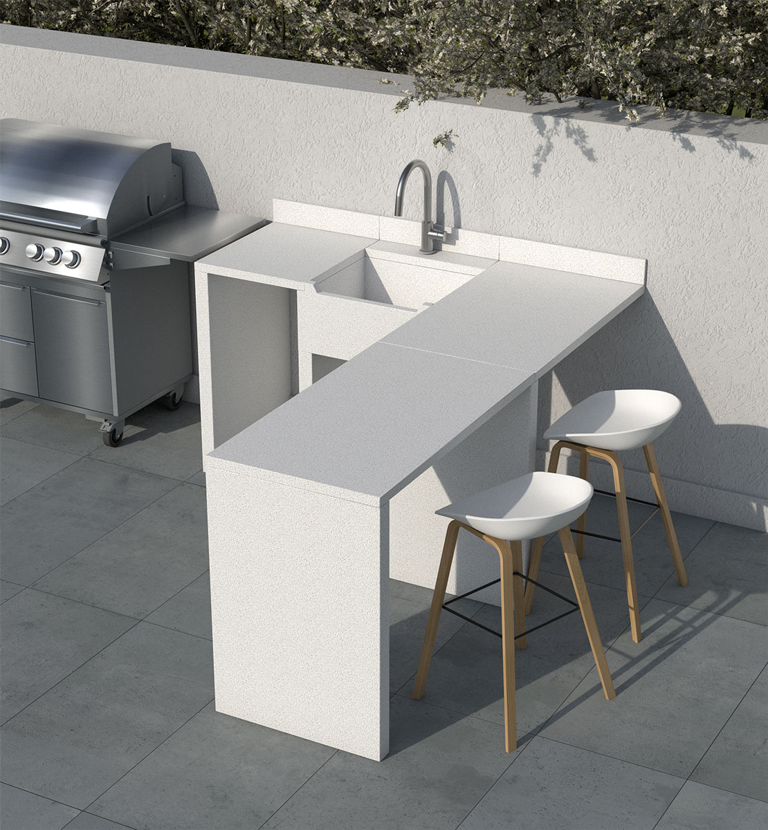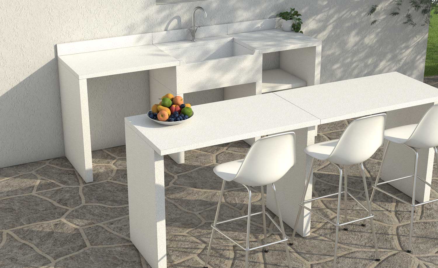 Modulo in muratura componibile, in cemento e scaglie di marmo.Robusto, stabile e resistente agli agenti atmosferici. Ideale per arredare funzionalmente gli spazi esterni, con un occhio al design moderno.