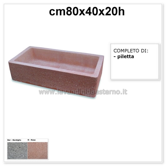 L’acquaio da giardino olimpo aq4050 è realizzato con una miscela di cemento grigio 42,5 e granulato di marmo di diametro circa mm6 disponibile in due colorazioni bardiglio e rosa e si adatta esteticamente a qualsiasi ambiente sia interno che esterno,sia moderno che rustico.
