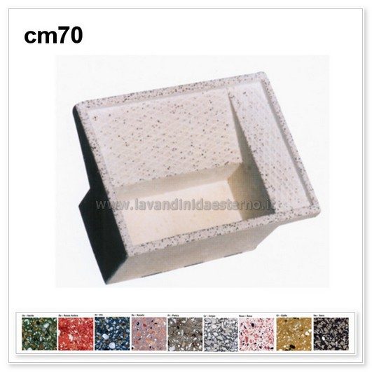 Il lavatoio lavanderia è disponibile in ben 9 colori vivaci ed accesi ottenuti amalgamando cemento 42,5, polvere di marmo e piccole scaglie di pietra marmorea, ottenuta dalle nostre famose cave di marmo.