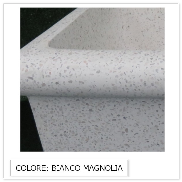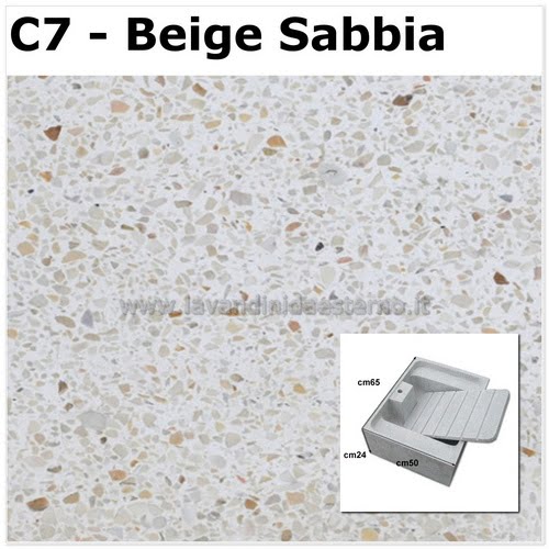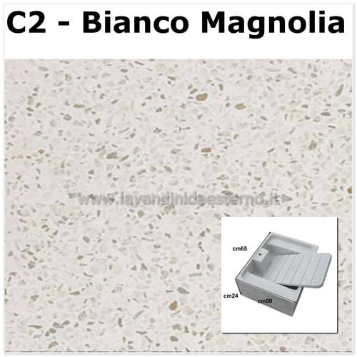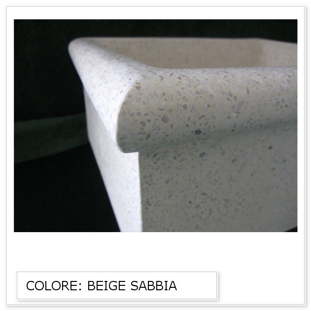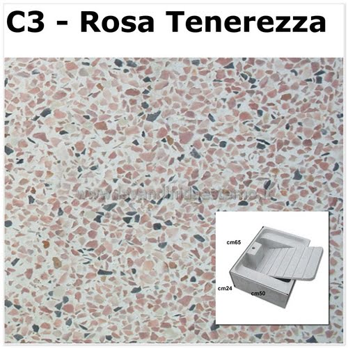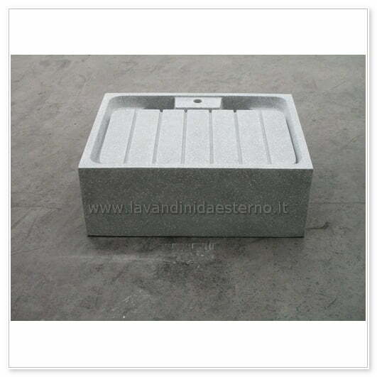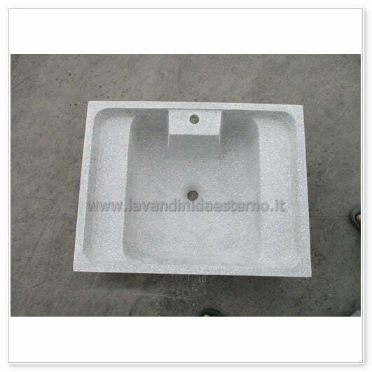 Il lavello è realizzato in cemento, polvere di marmo e varie scaglie di marmo amalgamate nell’impasto. A fine asciugatura dell’impasto il lavatoio viene disarmato dallo stampo e levigato manualmente da operai specializzati che daranno al manufatto un aspetto lineare e liscio al tatto.
