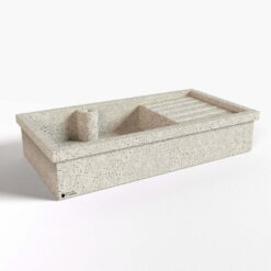 Ottimo per chi ama la cucina da esterno, il lavello è comodo per lavare verdura, stoviglie e utensili da giardino per una giornata all’aria aperta. Il lavello è già predisposto per l’installazione di un rubinetto da appoggio acqua calda/fredda in base alle necessità. Non reversibile è composto anche da uno sgocciolatoio laterale a destra che indirizza l’acqua nella vasca. Il lavandino non include la piletta.