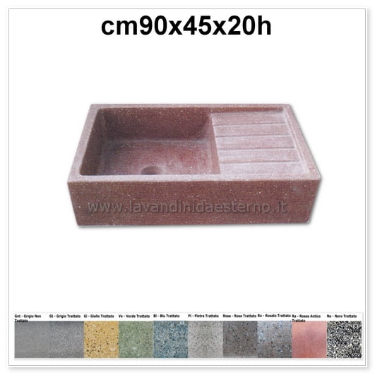 lavello cucina acquaio in graniglia levigata 610173 GT + sifone lavandino 610ACC013-CRO + staffe per acquai profondità cm45 306 + piletta con tappo 61015482 - cr cromo + rubinetto a parete per lavello da giardino 61023660 - cr cromo