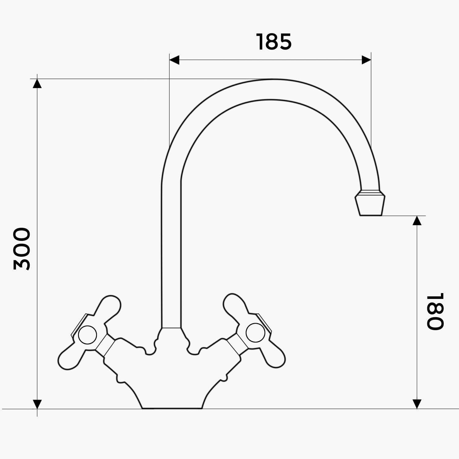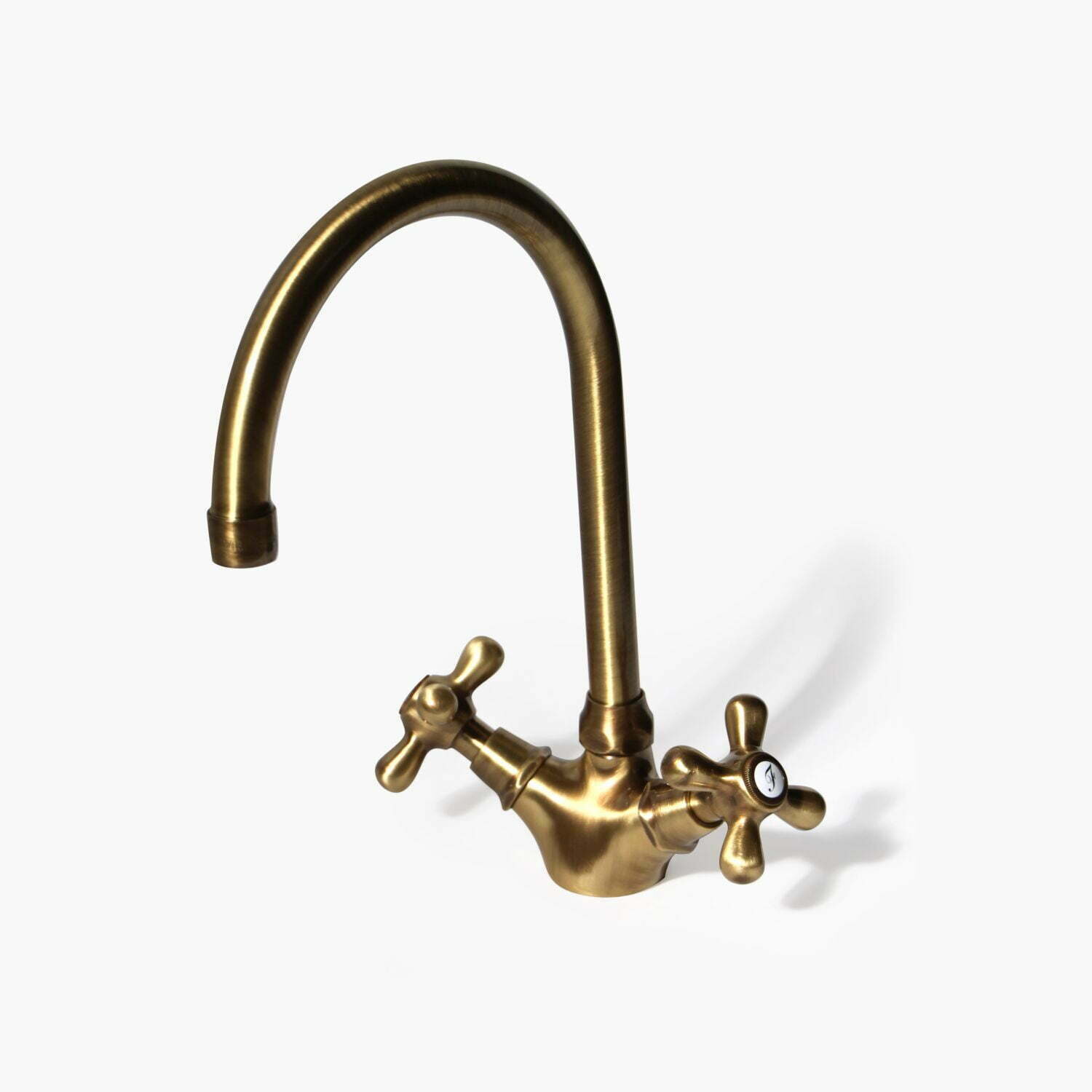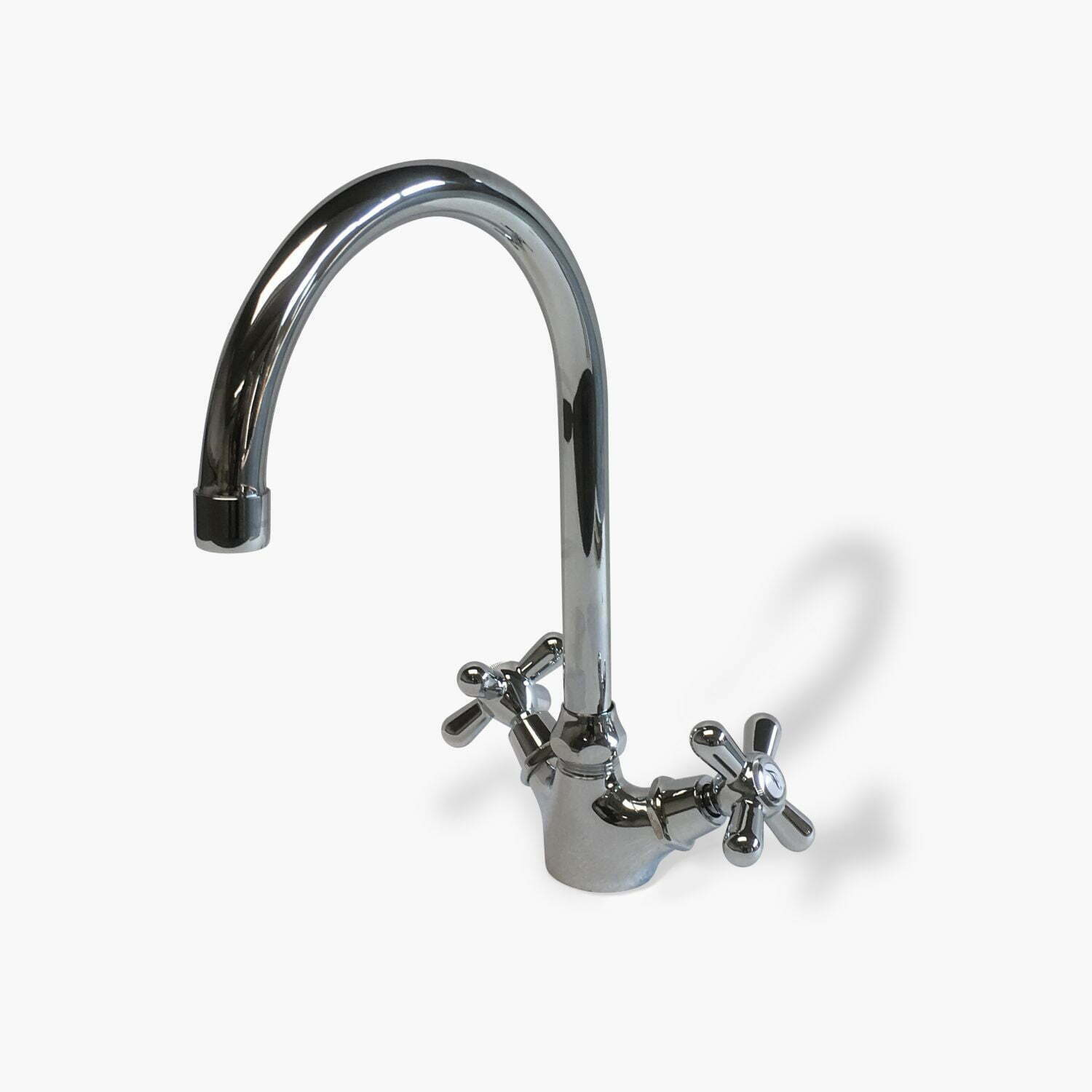 Composto da una bocca alta e girevole è un miscelatore, infatti i suoi bellissimi pomelli a stella sono finemente decorati con le iniziali dell’acqua della quale se ne richiede l’utilizzo: C – CALDA / F – FREDDA.