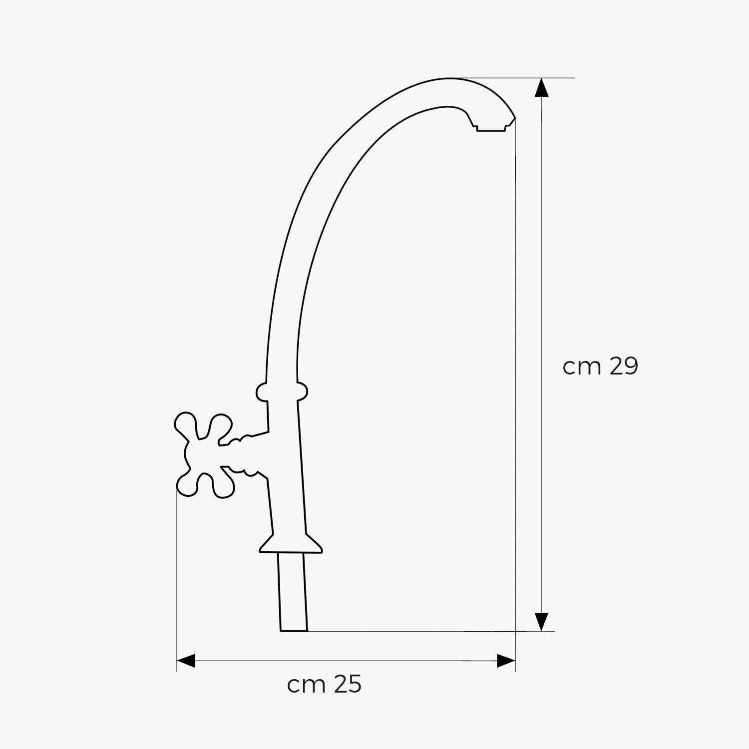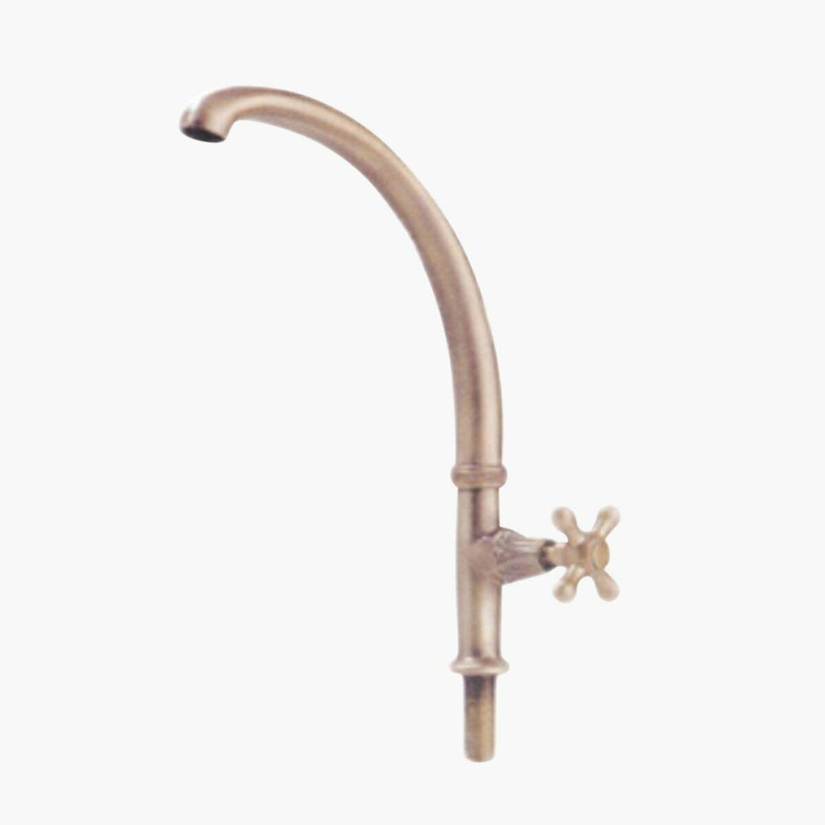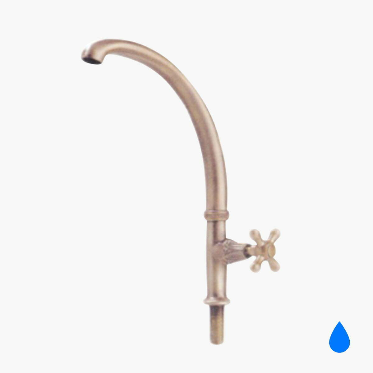 Il rubinetto per lavello da esterno con foro è un prodotto semplice ma di stile retrò, perfetto per esser collocato all’esterno su tutti i lavandini da giardino, terrazzo o balcone che hanno un foro soprapiano. Il rubinetto é resistente ad ogni intemperia, è composto da una canna alta e una manopola a croce. Disponibile nella colorazione vecchio ottone.