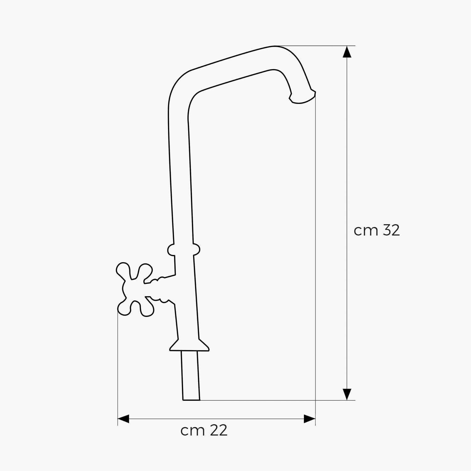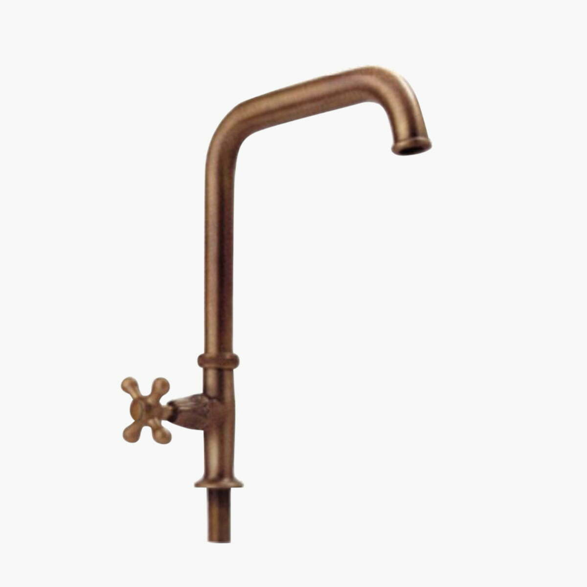 Il rubinetto per lavabo da appoggio è un prodotto semplice ed elegante, perfetto per esser collocato all’esterno su tutti i lavandini da giardino, terrazzo o balcone che hanno un foro soprapiano. Il rubinetto é resistente ad ogni intemperia, è composto da un collo alto e una manopola. Disponibile nella colorazione vecchio rame.