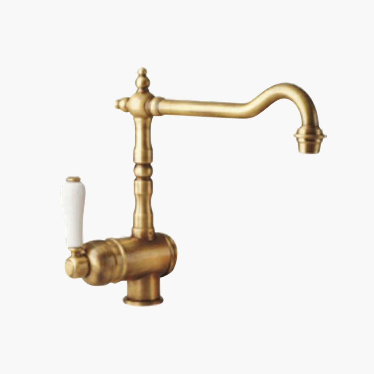 Il rubinetto da appoggio è disponibile in tre finiture vecchio ottone, vecchio rame e cromo. Elegante e raffinato è un rubinetto adatto ad un ambiente rustico dall’aspetto retrò. Viene acquistato con lavelli che hanno il foro per il rubinetto soprapiano. Dal design e forma particolare è formato da un elegante e resistente collo e una manopola laterale per regolare l’acqua calda e fredda.