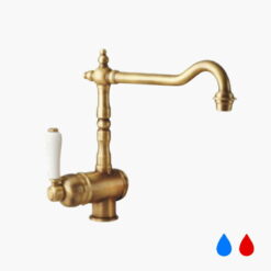 Il rubinetto da appoggio è disponibile in tre finiture vecchio ottone, vecchio rame e cromo. Elegante e raffinato è un rubinetto adatto ad un ambiente rustico dall’aspetto retrò. Viene acquistato con lavelli che hanno il foro per il rubinetto soprapiano. Dal design e forma particolare è formato da un elegante e resistente collo e una manopola laterale per regolare l’acqua calda e fredda.