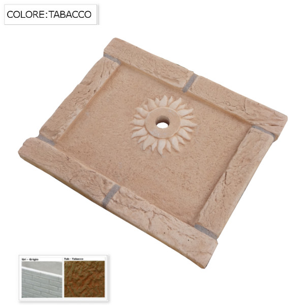 La decorazione sole attorno al foro per il rubinetto è una piccola accortezza che dona al fregio un aspetto simpatico ma ordinato.